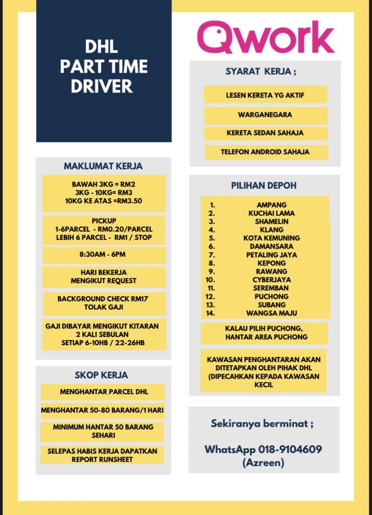 تويتر Azreennnnn على تويتر Looking For Dhl Part Time Driver Whatsapp Https T Co Xpdkl2nhiw Oh Kerjakosong Selangorkerjaya Peluangkerja My Twt Iklankerja Jomkerjamy Jobseekers91 Parttimekl Kerjapartime1 Lubangkerjaya Rbyliah Vacancymy